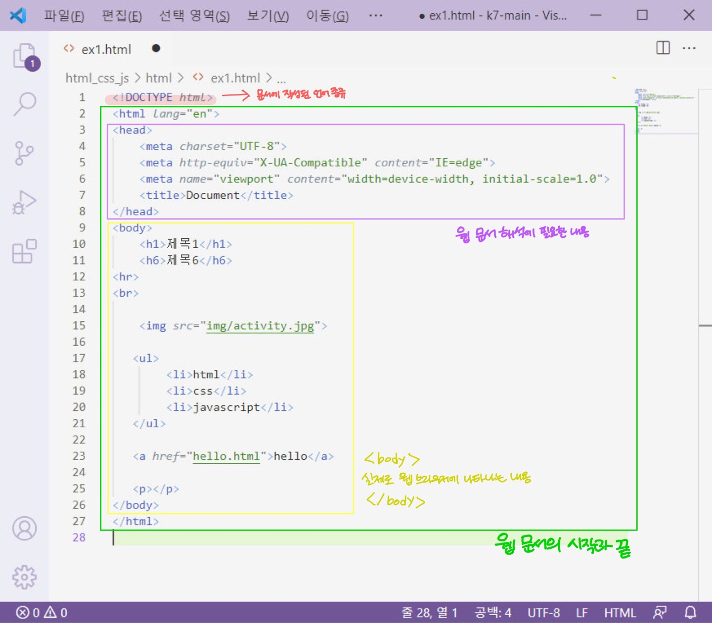HTML의 구조 ! 이해해야 코드를 칠 수 있지 않을까해서 함 만들어봤다