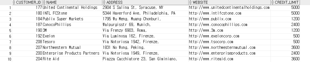 ※ Oracle에서 제공하는 OT sampledata를 가지고 실습하였습니다. SELECT 문 # SELECT 원하는 COLUMN FROM 원하는 TABLE; SELECT CUSTOMER_ID , NAME , ADDRESS , WEBSITE , CREDIT_LIMIT FROM CUSTOMERS; 테이블 전체 불러오기 # SELECT * FROM 원하는 테이블; SELECT * FROM CUSTOMERS; CUSTOMERS의 전체 테이블을 가져온다 더미테이블 dual SELECT * FROM DUAL; --더미테이블 / 연산처리를 수행할 수 있음 dual은 oracle이 제공하는 더미테이블이다. 주로 연산 처리를 실행함. SELECT (10+5)/2 AS VAL FROM DUAL; ORDER BY ORDE..